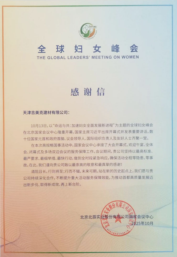 | 北京國(guó)家會(huì)議中心(二期)項(xiàng)目的大部分外立面鋼制門(mén)及室內(nèi)內(nèi)部主要通道的鋼系統(tǒng)門(mén)由天津吉美克建材有限公司承建。也為全球婦女峰會(huì)的順利召開(kāi),貢獻(xiàn)了力量。 |