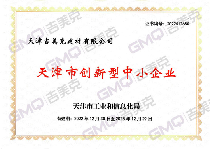 吉美克丨榮獲天津市創(chuàng)新型中小企業(yè)證書