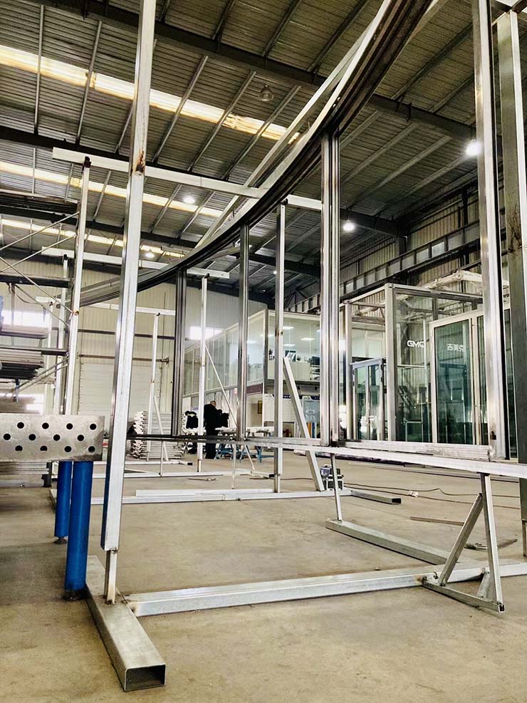 △ 鋼制弧形推拉疊門試裝 拍攝地:天津吉美克建材有限公司