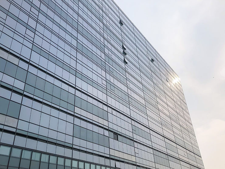 我公司承建該項目A1.0乙級防火幕墻及A1.5甲級防火窗部分。該防火幕墻系統滿足防火隔熱性能的同時可自由選擇子結構,便于施工安裝適應不同項目需求。鋼制系統搭配乙級中空納米硅復合隔熱防火玻璃,整體防火幕墻堅固耐用,美觀大氣。