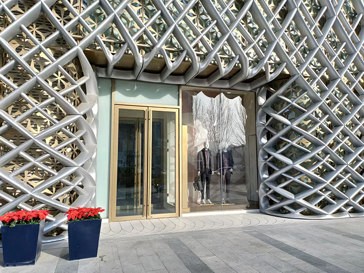 該項目采用玻璃幕墻和智能生態(tài)辦公空間相結合,打造完美相結合的藝術交互空間。中心被5G覆蓋且輔以室內(nèi)店鋪導航,享有大數(shù)據(jù)客流分析系統(tǒng),會員智能服務平臺,上德線上商城,智能停車服務等一系列智能終端,并通過全場流暢的建筑線條附以貫穿一到三層的大型雕塑感造型的LED屏、全國第二高室內(nèi)真水幕簾、“莫比烏斯”森林風格樹洞等藝術設計形成視覺中心,演繹空間藝術美學,為客戶打造了靈動的環(huán)境空間與別致的互動體驗。