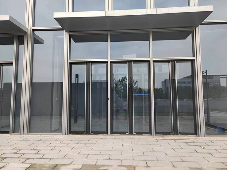 我公司承建該項(xiàng)目64樘鋼制隱框地彈門,產(chǎn)品采用我公司專利研發(fā)隱框技術(shù),門體采用鋼制框架,使用彩釉玻璃外置安裝方式隱去門框,使得門與玻璃幕墻融為一體,兼具建筑美學(xué)效果,塑造出高層工業(yè)廠房純凈簡(jiǎn)潔、輕盈通透的外觀形象,突破人們對(duì)傳統(tǒng)工業(yè)廠房形象的認(rèn)知,搭配數(shù)字樓宇、智能化設(shè)施以服務(wù)企業(yè)員工,為大家提供更加賞心悅目、更加舒適的辦公空間。