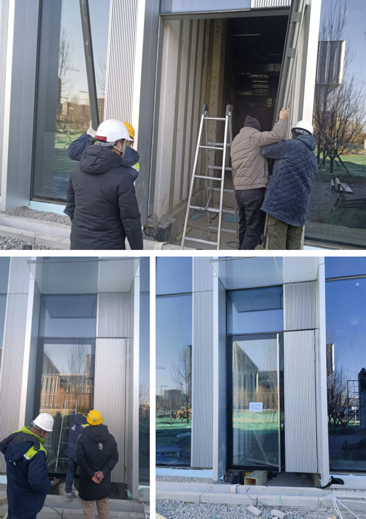 我司承接了本項目隱框門、防火窗、防火門、防火天窗等部分,隱框門樣門已試裝完成,產(chǎn)品采用我公司專利研發(fā)隱框技術(shù),門體采用鋼制框架,使用彩釉玻璃外置安裝方式隱去門框,使得門與玻璃幕墻融為一體,兼具建筑美學(xué)效果,塑造出高層工業(yè)廠房純凈簡潔、輕盈通透的外觀形象,突破人們對傳統(tǒng)工業(yè)廠房形象的認(rèn)知。