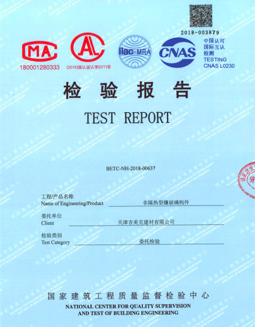 長春龍嘉國際機(jī)場二期擴(kuò)建工程T2航站樓——非隔熱型鑲玻璃構(gòu)件耐火完整性121分鐘檢測報(bào)告