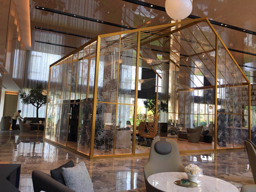 計(jì)理念,結(jié)合整體進(jìn)口鋼型材全部采用香檳金色氟碳噴涂處理,使整個(gè)建筑格調(diào)上升,可謂點(diǎn)睛之筆。
