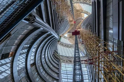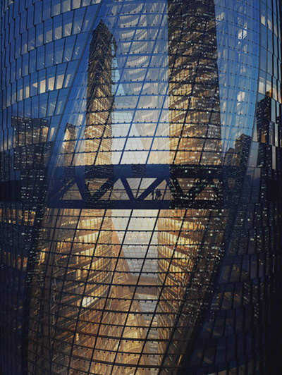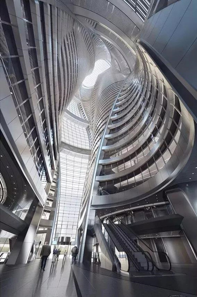 兩個流線型塔樓分立于地鐵聯(lián)絡線兩側