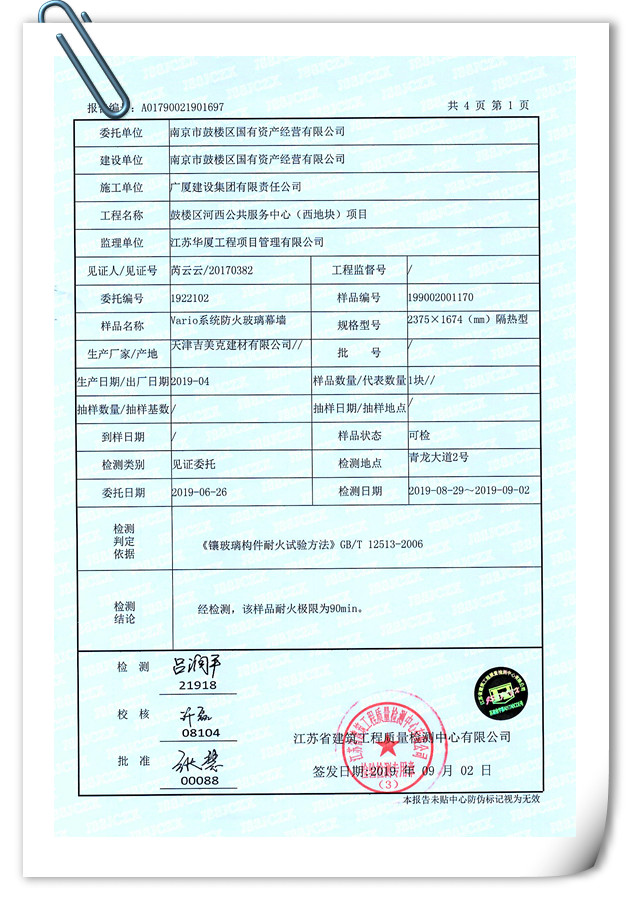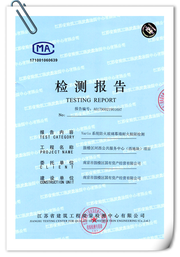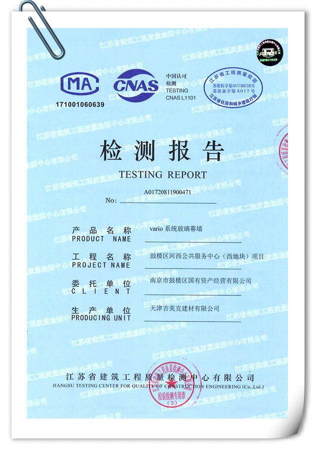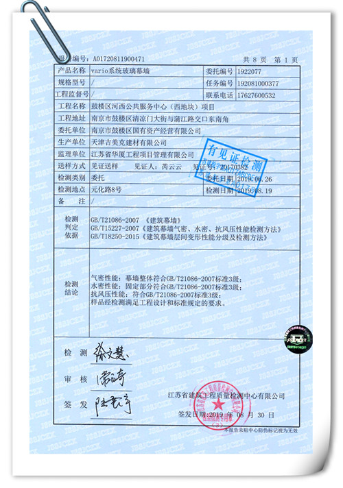 一、Vario系統(tǒng)玻璃幕墻四性檢測報告