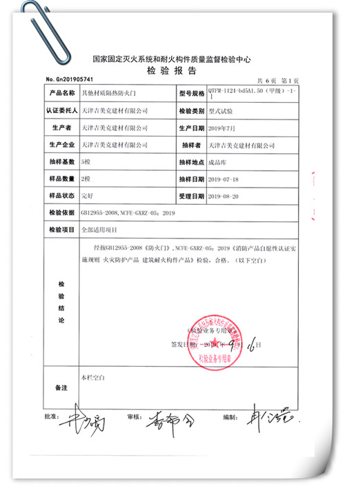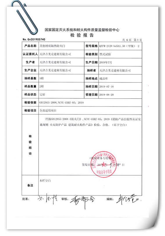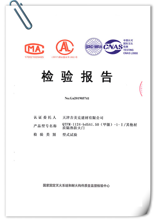 吉美克丨甲級(A1.50h)防火門通過型式檢驗(yàn) |
