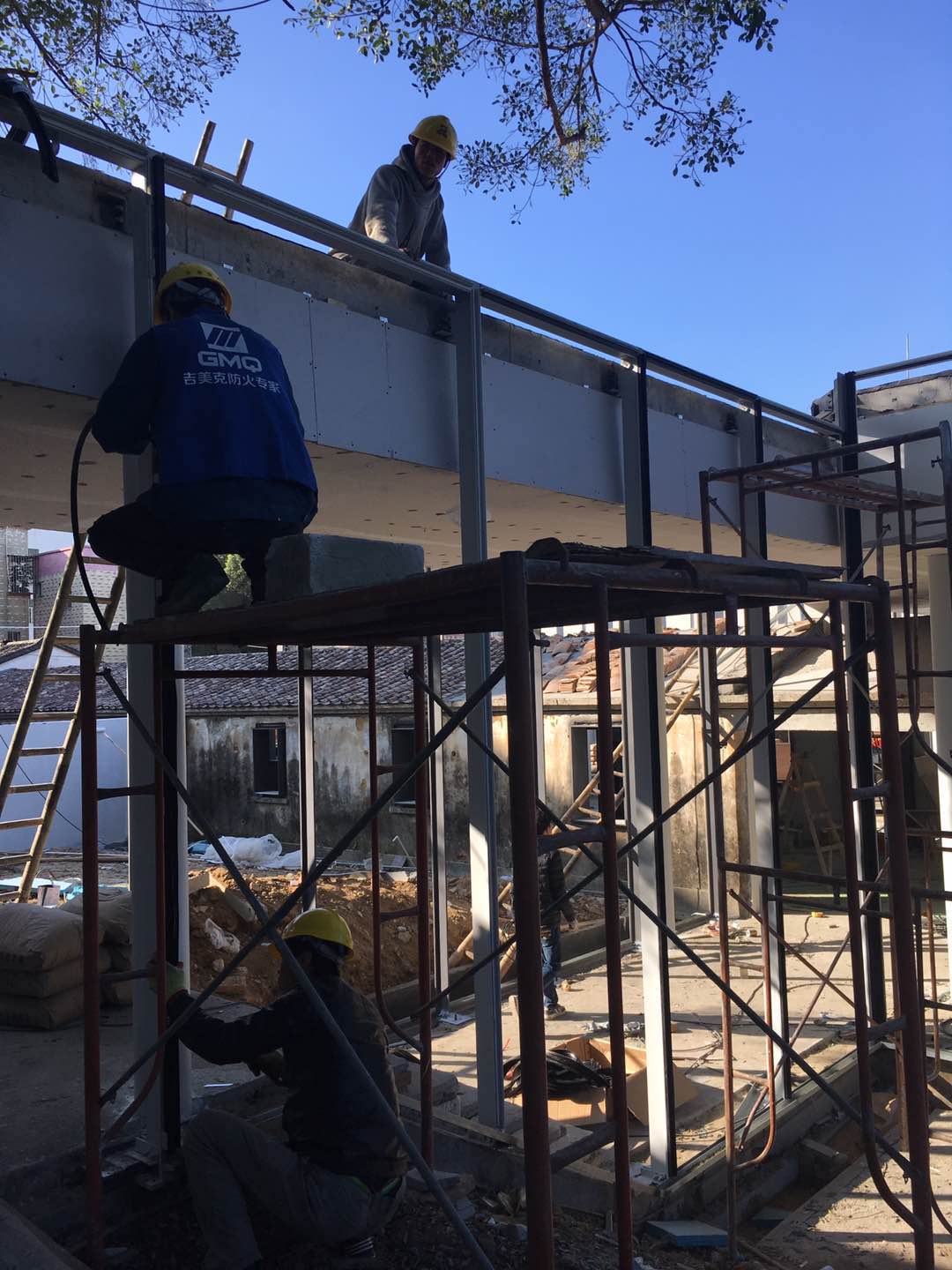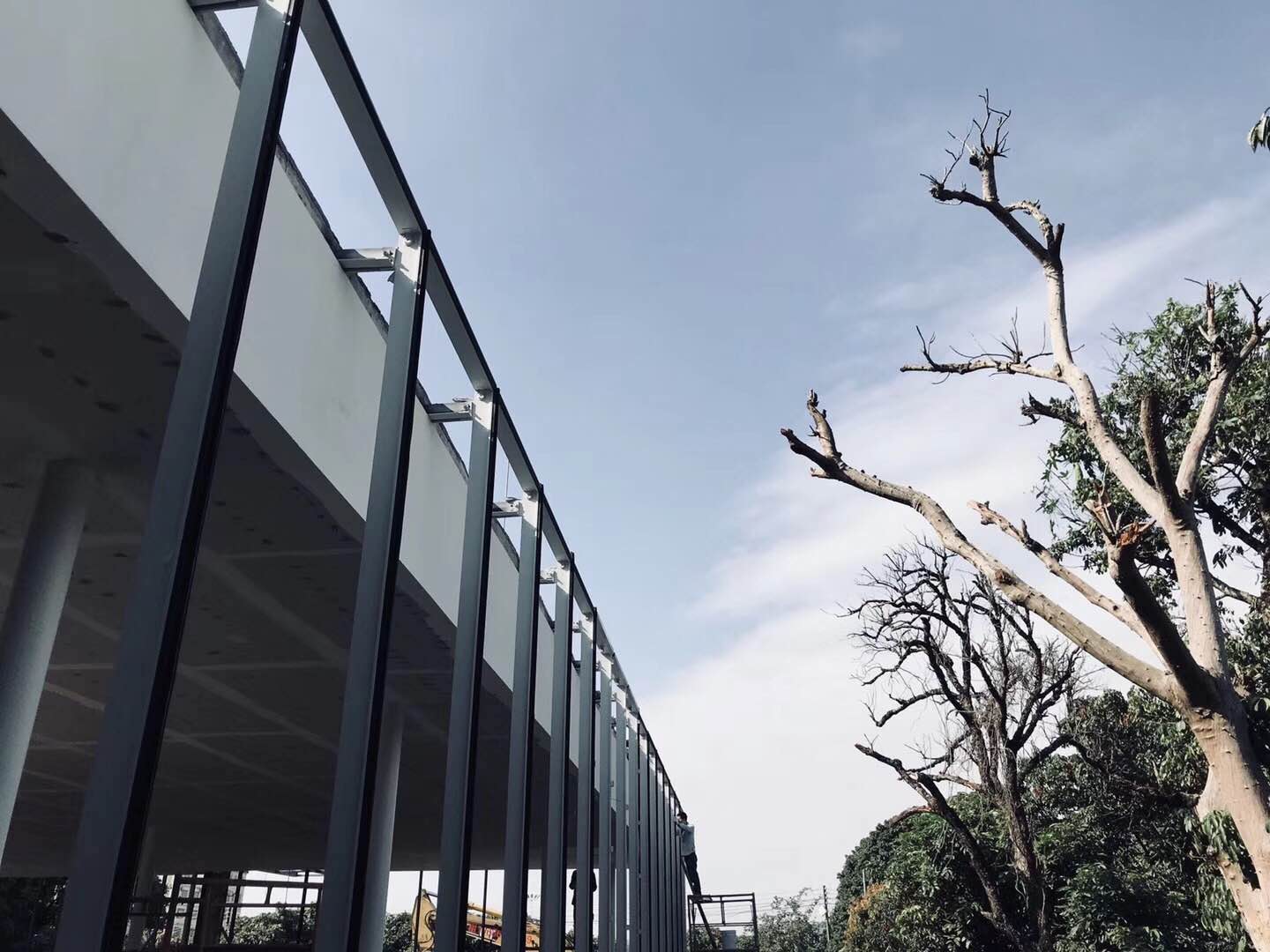 吉美克專業(yè)安裝團(tuán)隊(duì)初步搭建T型鋼幕墻