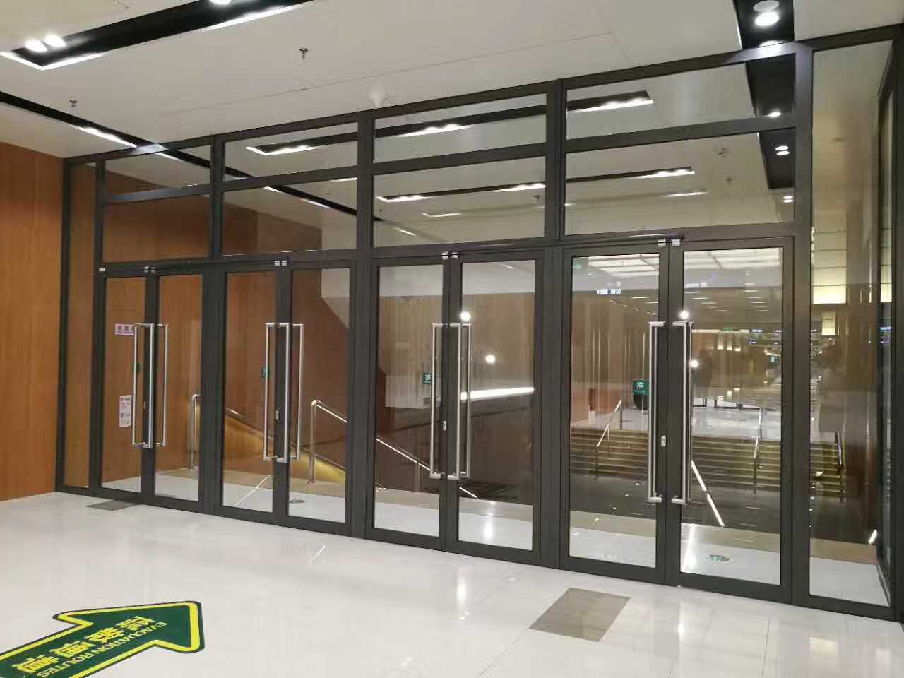 鋼制門配多瑪隱藏式閉門器,雙開門還同時配關閉順序器。