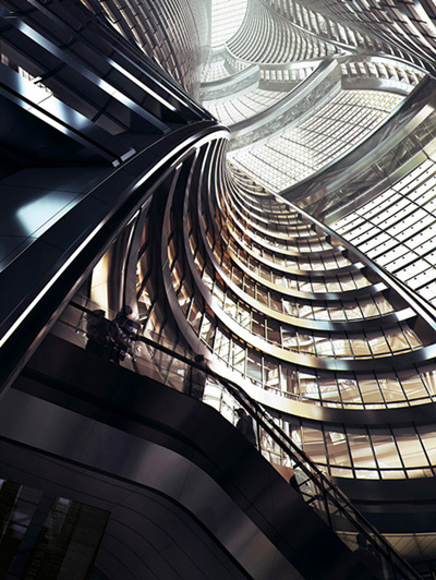兩個流線型塔樓分立于地鐵聯(lián)絡線兩側