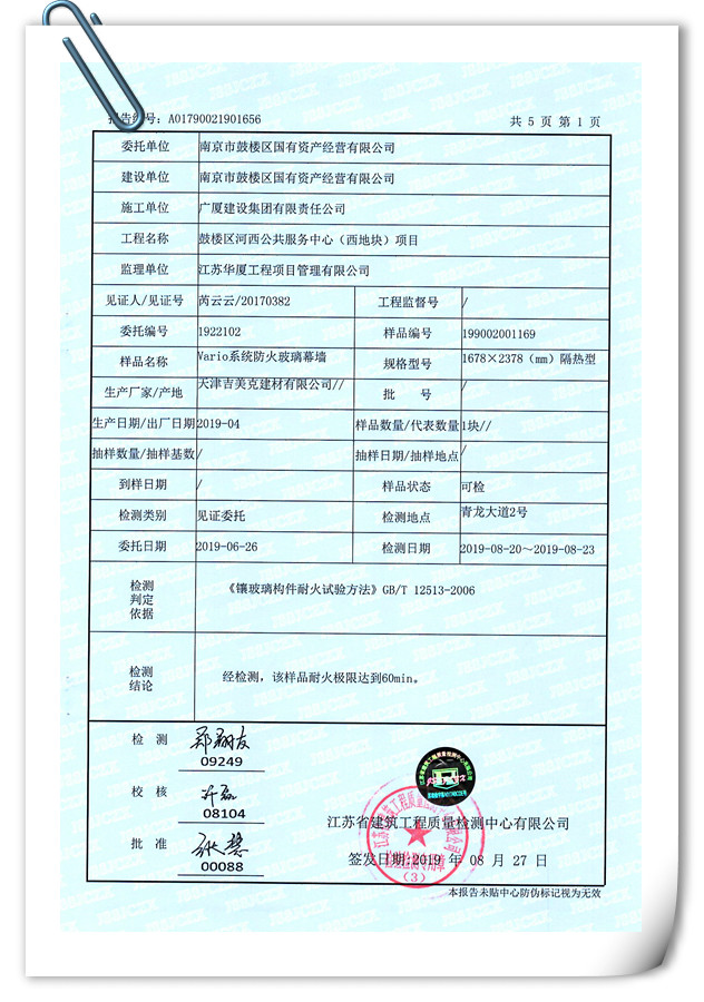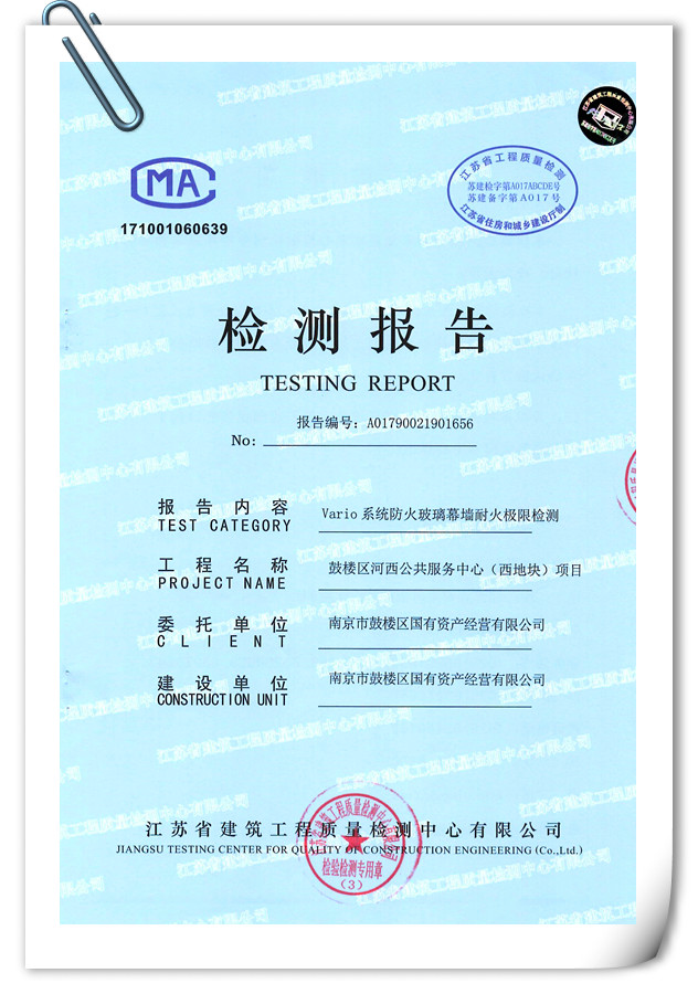 一、Vario系統(tǒng)玻璃幕墻四性檢測報告