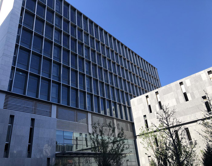 該項(xiàng)目幕墻采用GMQ防火幕墻系統(tǒng)(滿足耐火極限1.5h及1.0h)。外立面整體效果簡潔大方,線條規(guī)整,比例勻稱,可視面僅為60mm,可做出超大跨度,在保證高強(qiáng)度和高穩(wěn)定性的基礎(chǔ)上使玻璃面積最大化,采光效果更加。面材采用25mm復(fù)合防火玻璃+LOW-E玻璃,在滿足防火性能的基礎(chǔ)上,還具有優(yōu)異的隔熱、保溫性能,可大大降低因輻射而造成的室內(nèi)熱能向室外的傳遞,可達(dá)到理想的節(jié)能效果,實(shí)現(xiàn)冬暖夏涼的舒適效果。